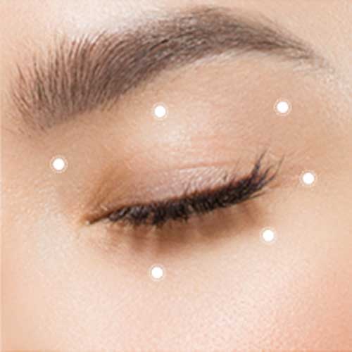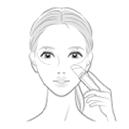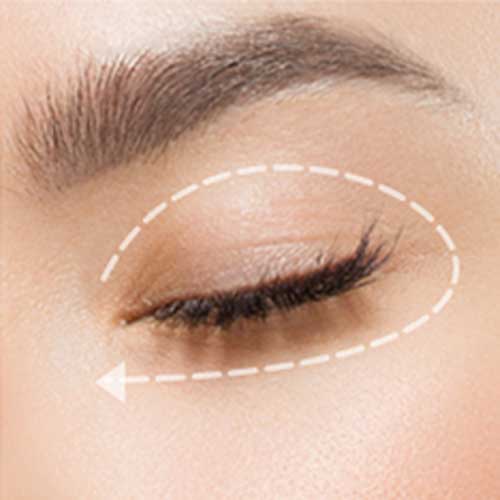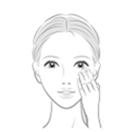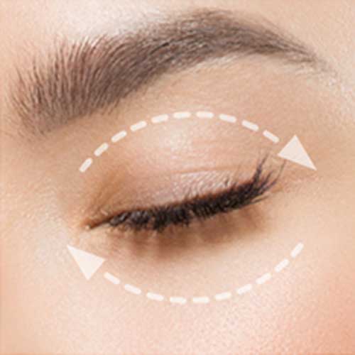 矢印方向に目元に円を描くようにマッサージします。これを3~5回繰り返します。