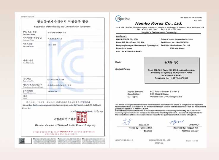 韓国において様々な殺菌の試験を行い、殺菌力97%〜99%という高い結果が保証されています。