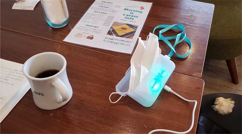 コンパクトサイズで持ち運びができる。オフィス、レストラン、カフェ、車など使いたい場所に自由に持ち運びが可能です。食事の際などにマスクを収納しつつ、殺菌することができます