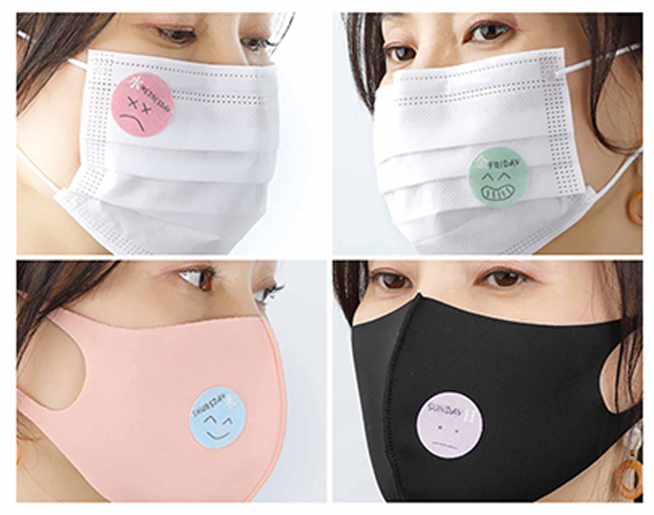色々なデザインがあるので曜日ごとに違うシールを使って気分を変えて楽しめます。貼付け位置も自在で日々のマスク生活をおしゃれに楽しく。