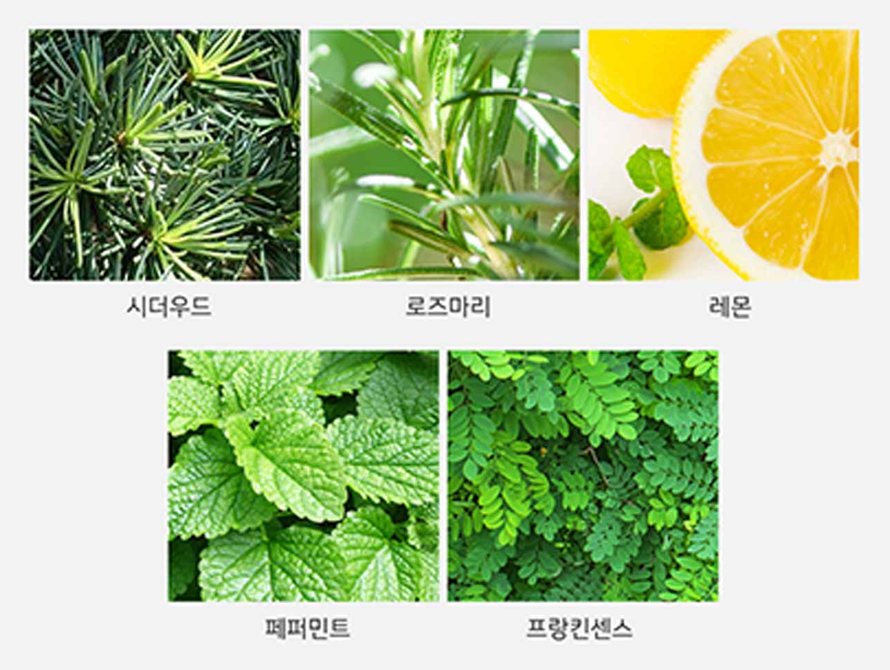 シドウッド、ローズマリー、レモン、ペパーミント、フランキンセンスを主成分とした天然アロマを使用しています。1日心地よい香りがマスク内に広がります。